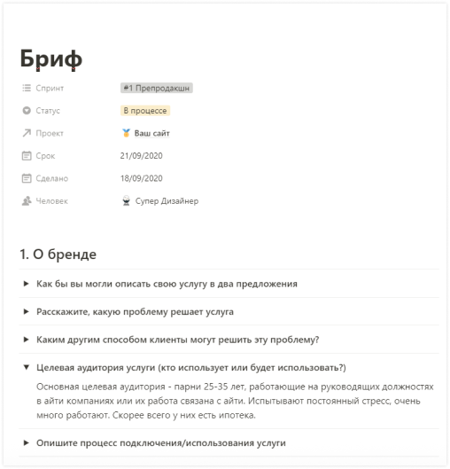 Мы зададим тысячу вопросов о ваших целях, планах, задаче и продукте, чтобы с головой погрузиться в работу