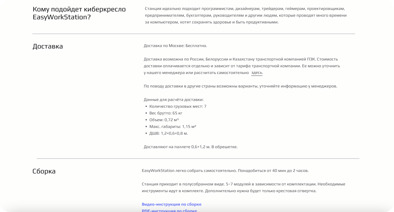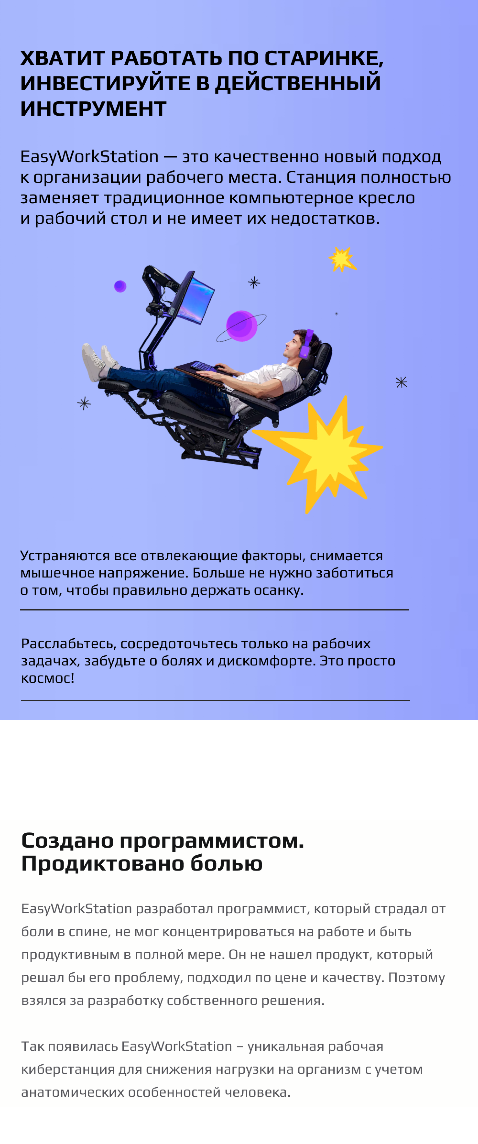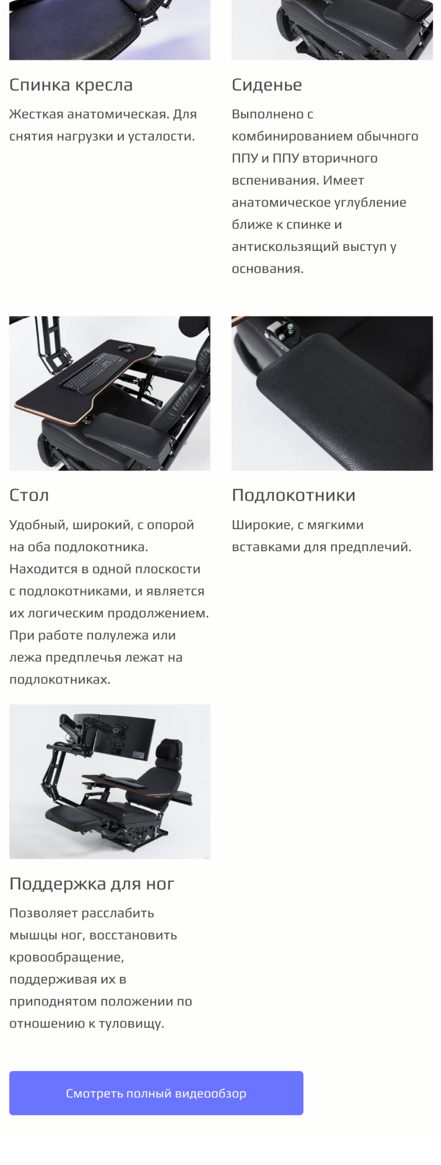 Посадочная страница для инновационного рабочего кресла